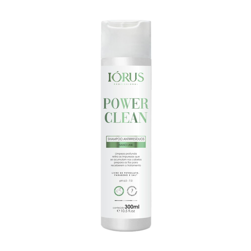 O Shampoo Antirresiduos Power Clean da IÓRUS PROFESSIONAL promove a dilatação das cutículas capilares, deixando-as desobstruídas para receberem os tratamentos. Rico em Fiber Dtox, auxilia na remoção dos poluentes absorvidos pela fibra capilar.